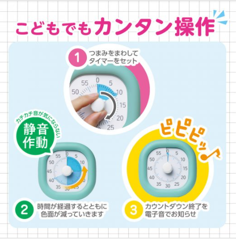 学習にも使用できますが、切り替えの苦手なお子様に時っ感タイマーを使用して時間を区切ることで、