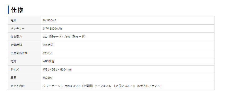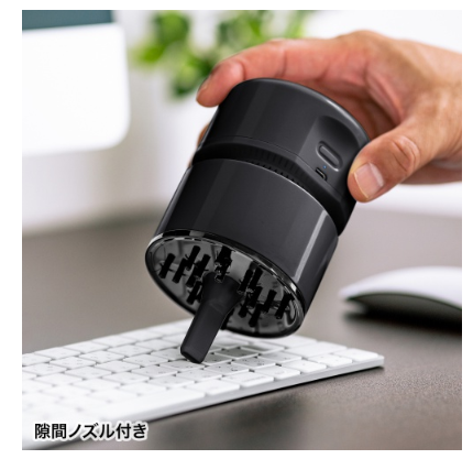 隙間ノズルもついているので、お掃除のしづらいキーボードの隙間などにも利用できます。